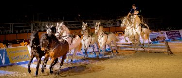 Geschwindigkeit und atemberaubende Akrobatik zu Pferde sind die Spezialität von Ghislain Cayla und seiner Trickreiter-Truppe. Temporeich und spektakulär erobern sie die Arena. Ihre ungarische Post mit acht Pferden findet stets neue Formen, sich zu teilen und neu zusammen zu finden. So entstehen immer wieder andere Bilder aus der Kraft und Dynamik im Zusammenspiel zwischen Mensch und Pferd.