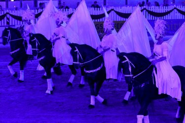 Lichtspektakel oder Weltrekord - die Quadrillen-Formation aus Österreich sucht die Herausforderung. Ihre außergewöhnlichen Choreographien im Sattel ihrer schwarzen Schönheiten führten sie bis nach Saudi Arabien zum Jeddah Festival. Außergewöhnliche Figuren gepaart mit Zirkuslektionen und ganz viel Gefühl für Bildkomposition und Stilbewusstsein machen ihre Shownummern zu eindrucksvollen Erlebnissen.